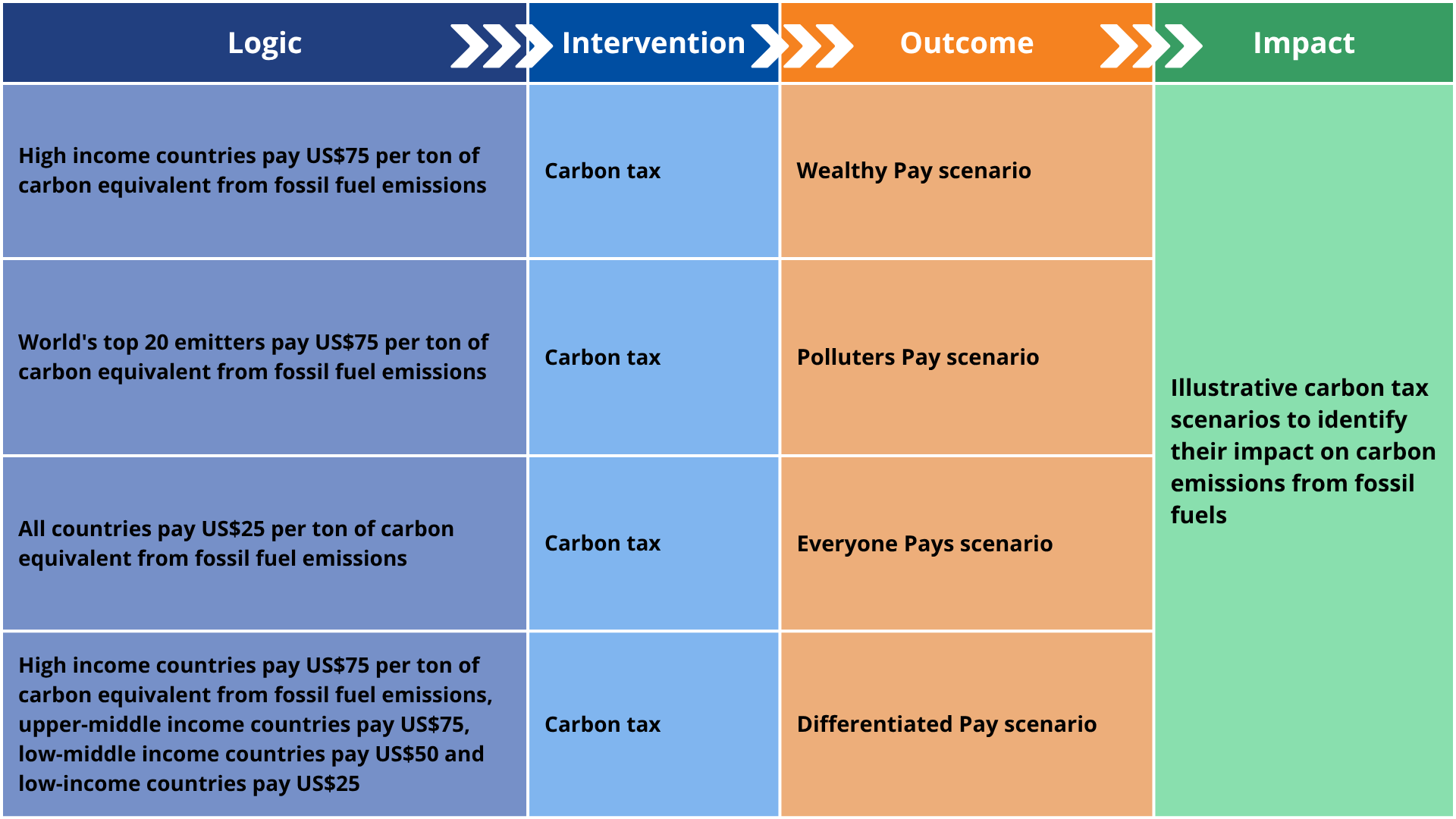 Initially, our website modelled 11 distinct scenarios for each geography or region, each linked to a specific theme. However, we revised this structure at the end of 2022 to provide a more balanced representation, now consisting of eight sectoral scenario for each geography. As part of this process we delinked the scenarios from themes meaning that each theme does not necessarily have a separate scenario. The eight scenarios are listed below and described in more detail in the Scenario Intervention section: